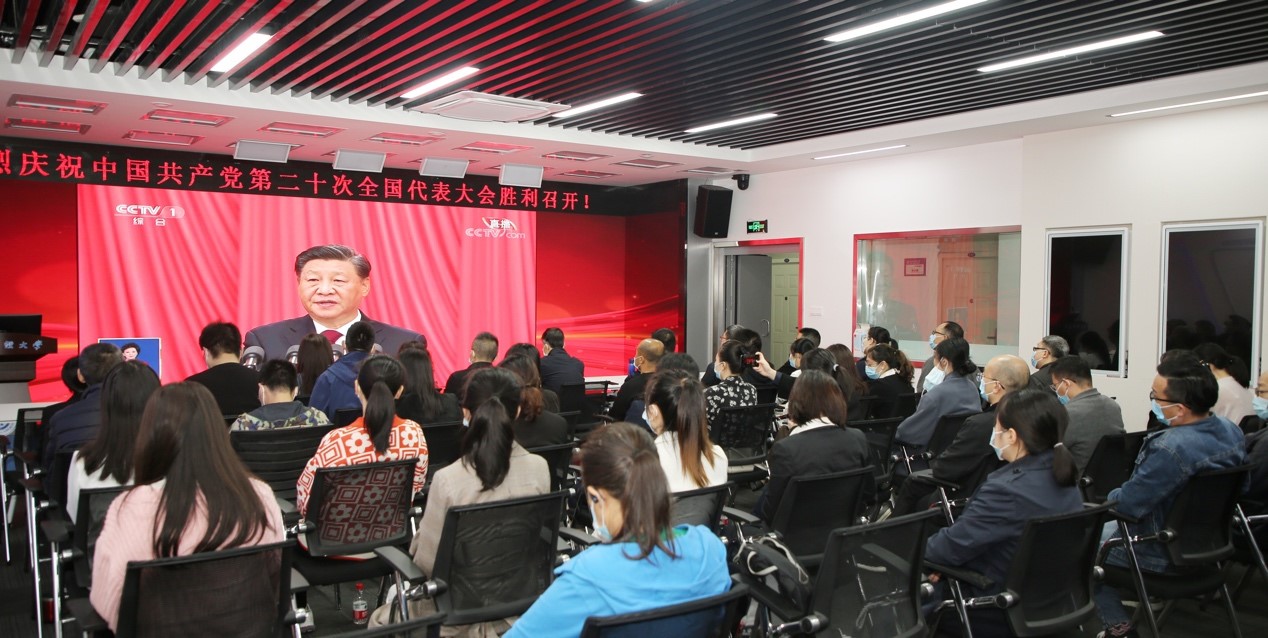 10月16日上午、举国关注、举世瞩目的中国共产党第二十次全国代表大会在北京隆重开幕。继续(网络)教育学院领导班子成员、教师第一、二党支部党员、民主党派代表、职工代表在光华校区未来教室集中收听收看党的二十大盛况,其他职工在家收看大会直播。