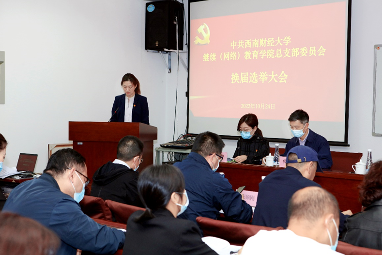 2022年10月24日上午,中共永利3044集团官网继续(网络)教育学院总支部委员会换届选举党员大会,在光华校区计算机楼网络视频教室顺利举行。会议由学院党总支副书记、副院长李杰同志主持,学院正式党员、预备党员参加了会议,学校换届工作督导组组长李大勇同志、督导组成员杨雁晶同志、学院民主党派成员、职工代表列席会议。