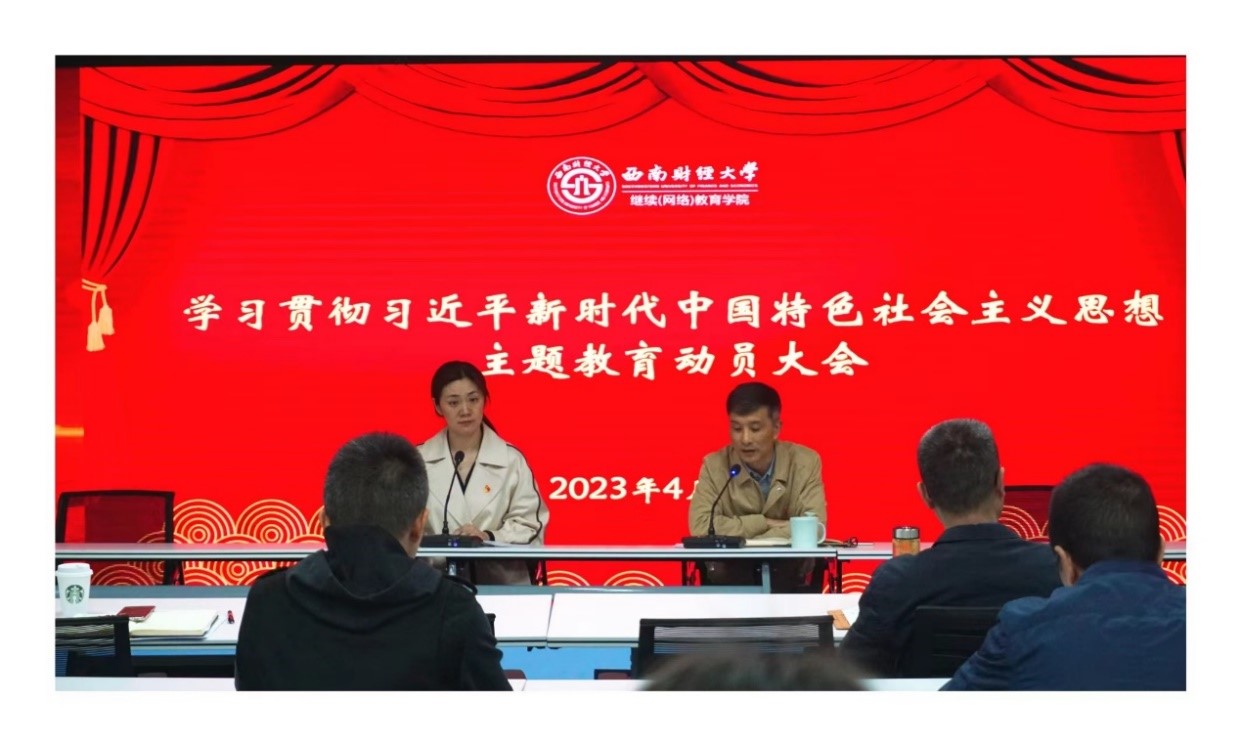 4月24日,继续(网络)教育学院召开学习贯彻习近平新时代中国特色社会主义思想主题教育动员大会。曾朝夕院长主持会议,党总支书记顾绚作动员讲话,领导班子成员及全体党员参加会议。