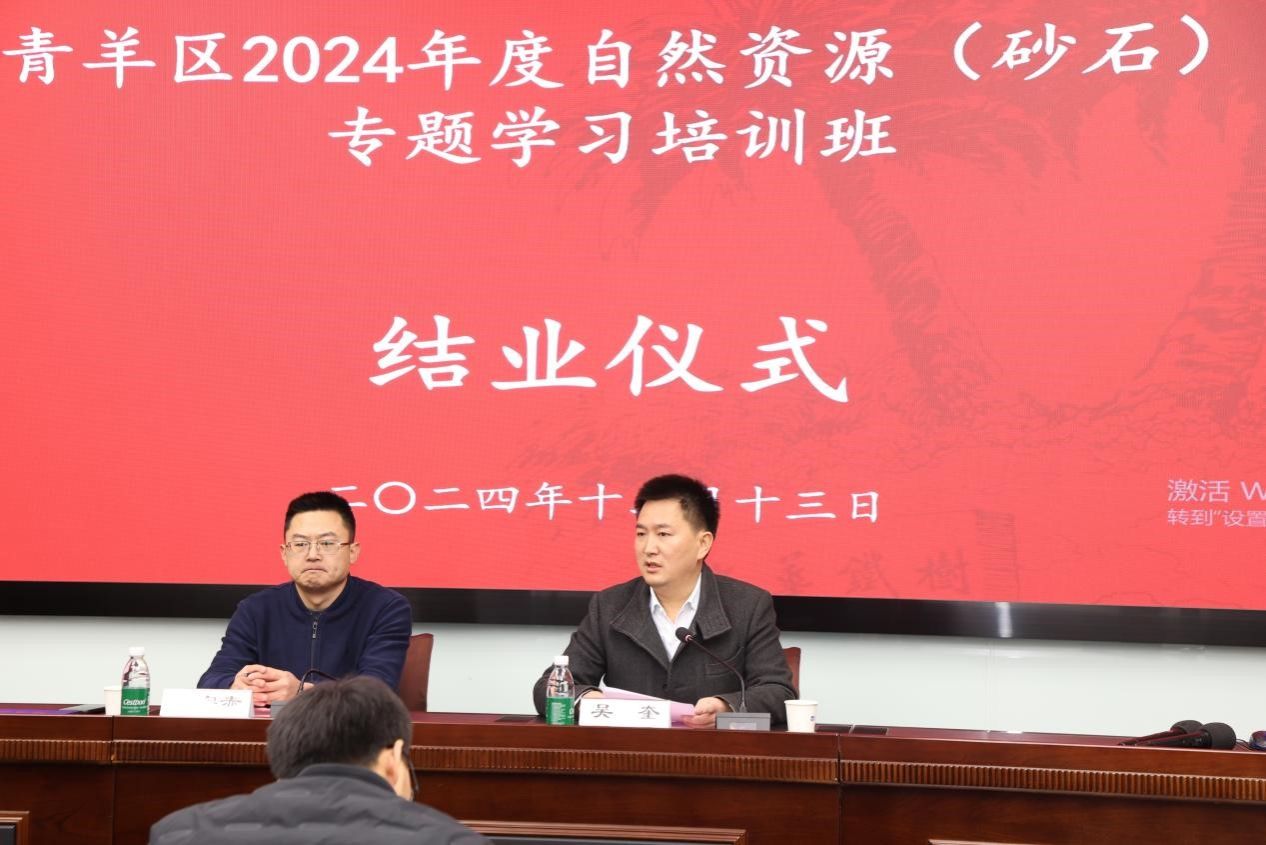 近日,由永利3044集团官网培训中心承办的“青羊区2024年度自然资源(砂石)专题学习培训班”圆满落幕,近50人参加本次培训。成都市青羊区人民政府党组成员、副区长吴奎出席结业仪式并作总结讲话。