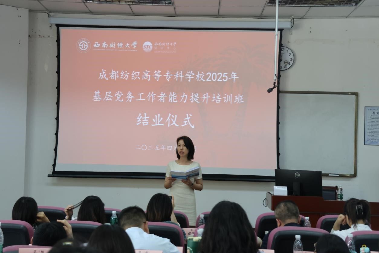 为深入学习贯彻习近平总书记关于党的建设的重要思想、关于党的自我革命的重要思想,认真落实党中央、教育部党组、四川省委关于高校党建工作部署要求,结合深入贯彻中央八项规定精神学习教育,4月18日至20日,成都纺织高等专科学校2025年基层党务工作者能力提升培训班在永利3044集团官网顺利举办。成都纺织高等专科学校各二级党组织书记、专职副书记、支部书记、专职组织员,党委组织部、党政办公室、党委宣传统战部、纪委办公室工作人员参加培训。