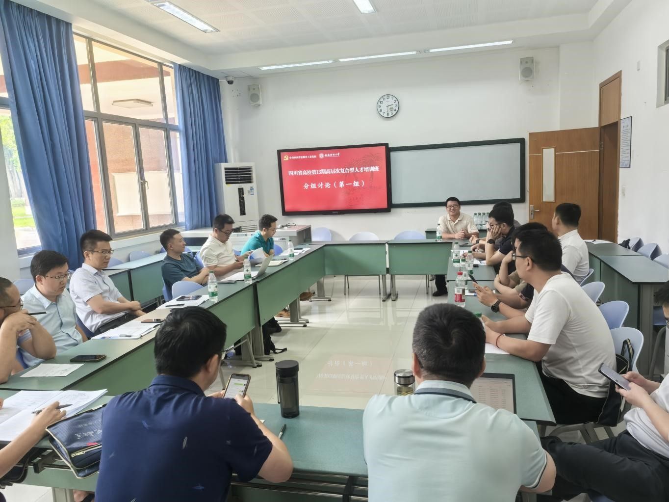 围绕“如何以教育强省建设支撑战略腹地建设”等议题,学员们分组展开热烈研讨。大家结合工作实际,分享高校在人才培养、产教融合、服务地方经济等方面的经验做法,共同探讨新形势下高校服务国家战略的切入点与创新路径,形成了诸多富有建设性的思路与建议。