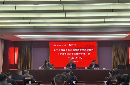 在深入学习宣传贯彻党的二十大精神之际,由永利3044集团官网培训中心承办的金牛区政法系统学习党的二十大精神专题政治轮训于11月25日圆满结束。金牛区委常委、政法委书记向阳,永利3044集团官网继续(网络)教育学院副院长高婷婷出席开班典礼并讲话,来自金牛区政法单位以及街道政法委员共计46名科级及以上政法干部参加培训。为期5天的课程,主题鲜明、内容丰富、紧贴实际,有效促进全体参训学员提高政治站位、强化政治能力、凝聚奋进动力。