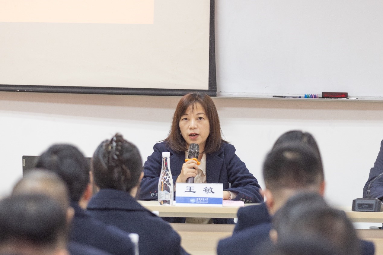 王敏致欢迎辞。她对宜宾分行的参训学员们表示热烈欢迎,并介绍了我校的发展历程、办学特色、师资情况以及我院与中国工商银行在教育培训方面的紧密合作,对我院的专业化办学成效以及在开展银行业培训方面的突出优势进行了说明。她表示,学院将聚焦培训目标,针对性开展好教学与服务,充分发挥教育培训优势,赋能助力参训学员的工作开展和宜宾分行的事业发展。