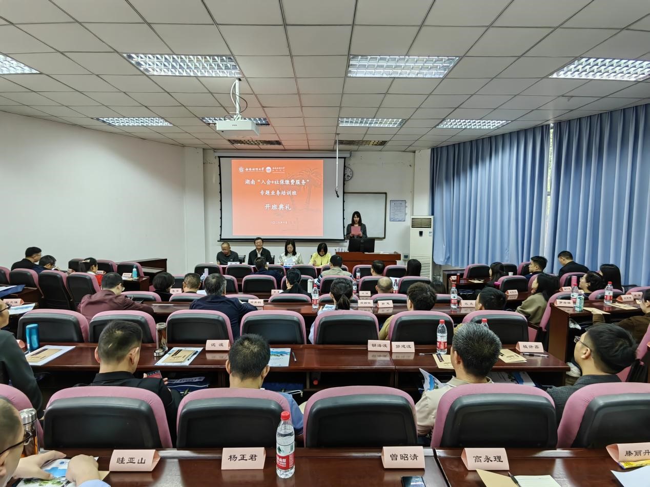 10月17日,培训班举行开班仪式。湖南省省总工会党组成员、省教育工会主席刘湘凌,湖南省税务局社会保险费处处长匡雄,湖南省总工会基层工作部部长张敏,永利3044集团官网继续(网络)教育学院副院长高婷婷,湖南省总工会、湖南省税务系统干部一共50人出席培训班开班仪式。