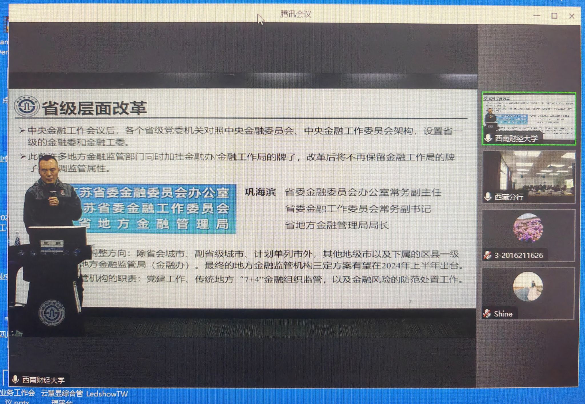 本次培训采用线上直播方式,培训内容以“中央金融工作会议精神解读”、“金融强国高质量发展”、“双碳经济、绿色金融创新发展”、“普惠金融数字化转型发展”、“宏观经济金融形势与热点问题分析”等为主题开展富有前瞻性、专业性的专题授课,有助于学员对中央金融工作会议精神的全面领会和准确把握,提升其政治素养和履职能力,为中国金融事业高质量发展贡献了智慧和力量。