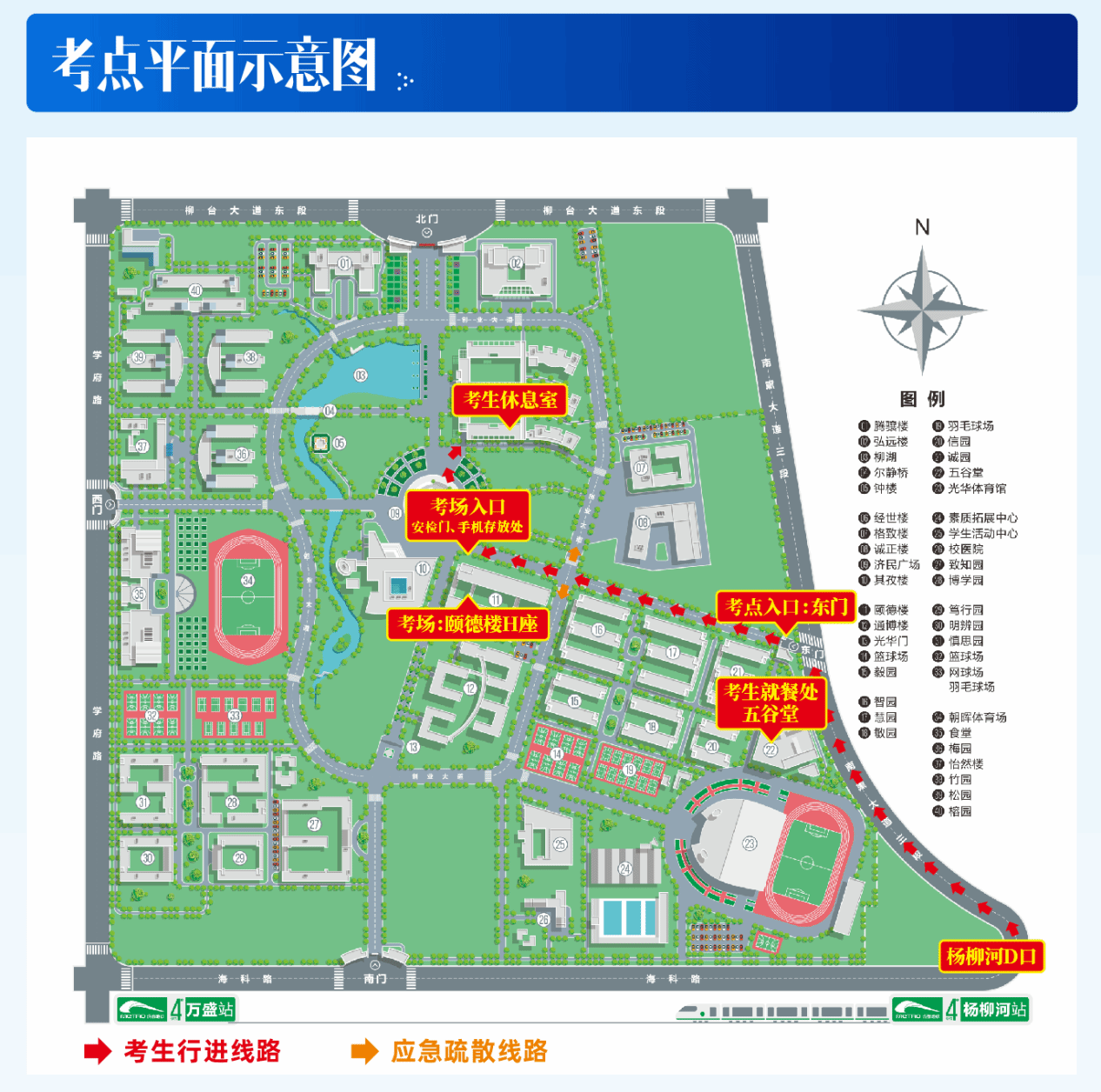 3.考试期间谢绝社会车辆进入校园。学校周边停车资源极为有限,建议考生尽量选择乘坐公共交通工具前往,经学校东门进入。请考生注意考试期间的天气变化及交通状况,掌握好路途时间,以免影响考试。
