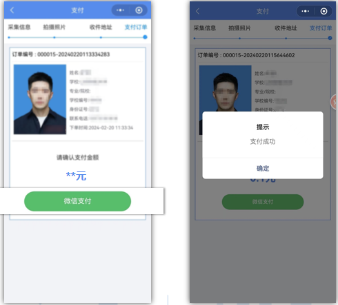 7.关于人工审核。支付完成后请同学关注个人订单页面,后台将在7个工作日内对采集的图像进行人工审核,如图像不符合采集标准,后台会驳回并给出重拍意见,同学可点击修改照片重新上传。