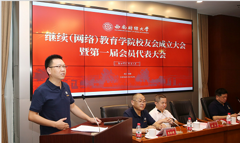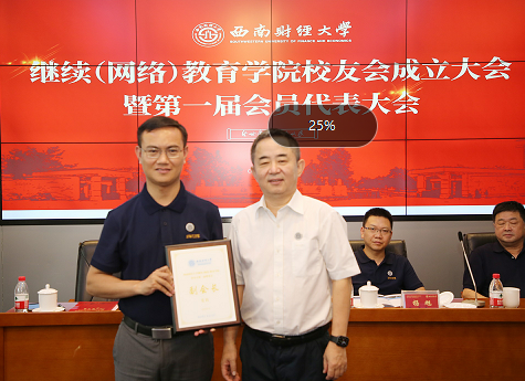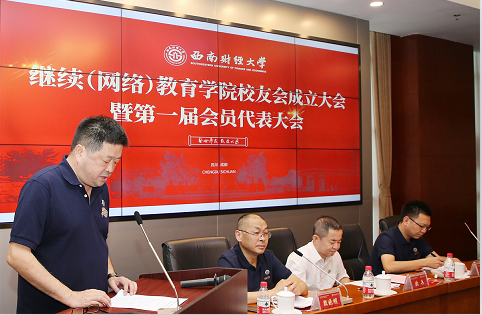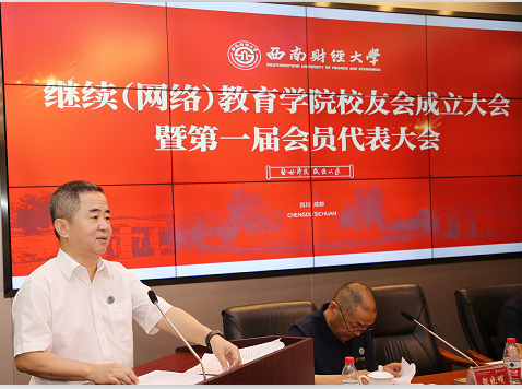 欧兵副校长代表学校对学院校友会的成立表示热烈的祝贺,向广大校友致以诚挚地问候,向莅临本次大会的校友表示热烈欢迎。他强调,校友为母校赢得了社会各界的广泛赞誉,心系学校发展,关注母校未来,为学校献策献力,有着爱校荣校兴校的光荣传统;校友与母校是荣辱相依的命运共同体,是学校最宝贵的财富,是母校最亮丽的名片,也是学校发展最可靠的力量。继续(网络)教育学院校友会的成立是学校校友工作在新阶段的又一新亮点。他希望大家升华爱校之情、强校之志;汇聚发展伟力、奋进合力;弘扬西财精神、家国情怀,建设好大家共同的精神家园,为母校发展做出积极贡献。