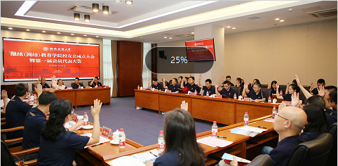 大会审议、表决通过了《永利3044集团官网继续(网络)教育学院校友会章程》及第一届理事会、组织机构建议名单,并选举陈顺刚为首届校友会会长,毛良、刘枭、李杰、李文山、郑斌、周世中为副会长,郑斌兼任秘书长,毛明亮、孙建军、李自利、杨豹、应辉、张庆台、罗小华、崔付京为副秘书长。殷晓明为学院校友会监事。欧兵副校长为理事会成员颁发聘书。学校领导及校友总会向学院校友会授旗。