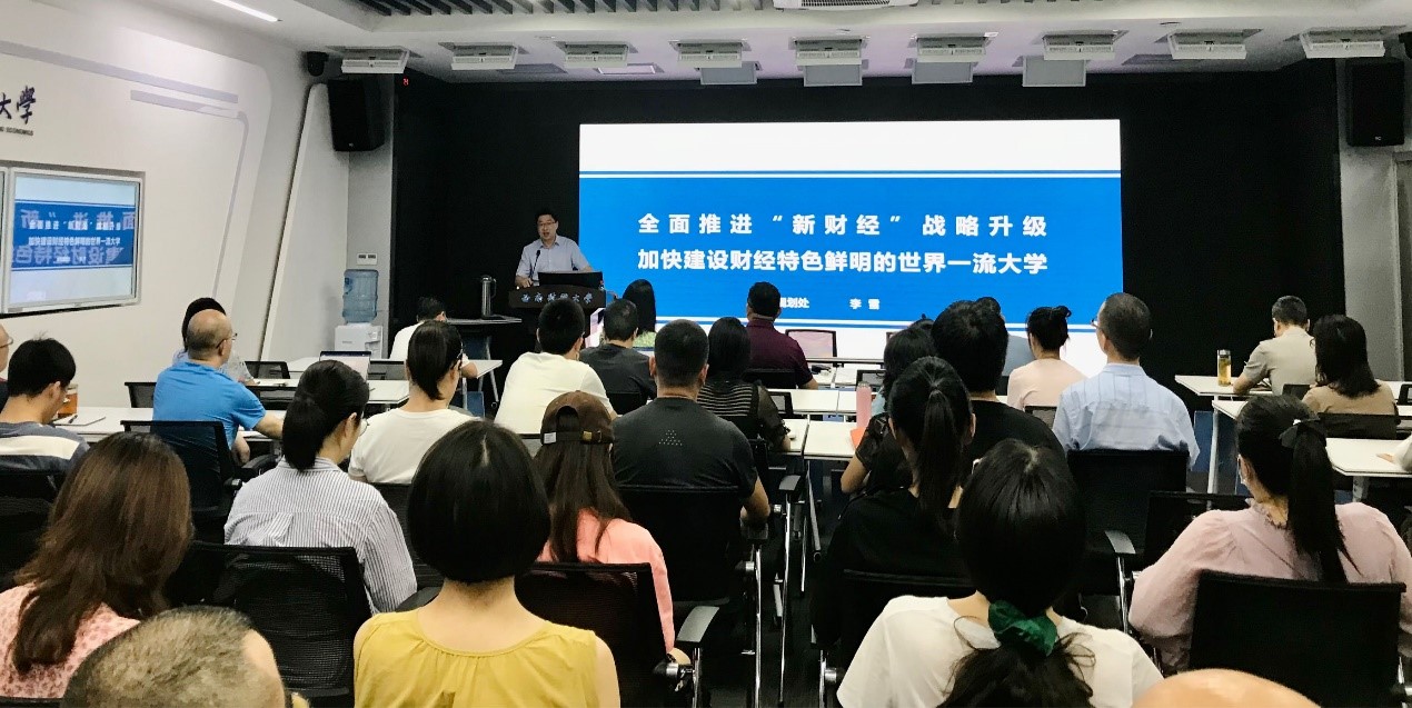 为深入学习贯彻党的二十大精神和学校十三届五次党代会精神,结合学院主题教育工作安排,6月13日下午,学院在计算机楼未来教室举行了全院职工政治理论学习会,学校发展规划处处长李雪作“全面推进‘新财经’战略升级 加快建设财经特色鲜明的世界一流大学”主题讲座,全体职工参加会议。学院院长曾朝夕主持会议。