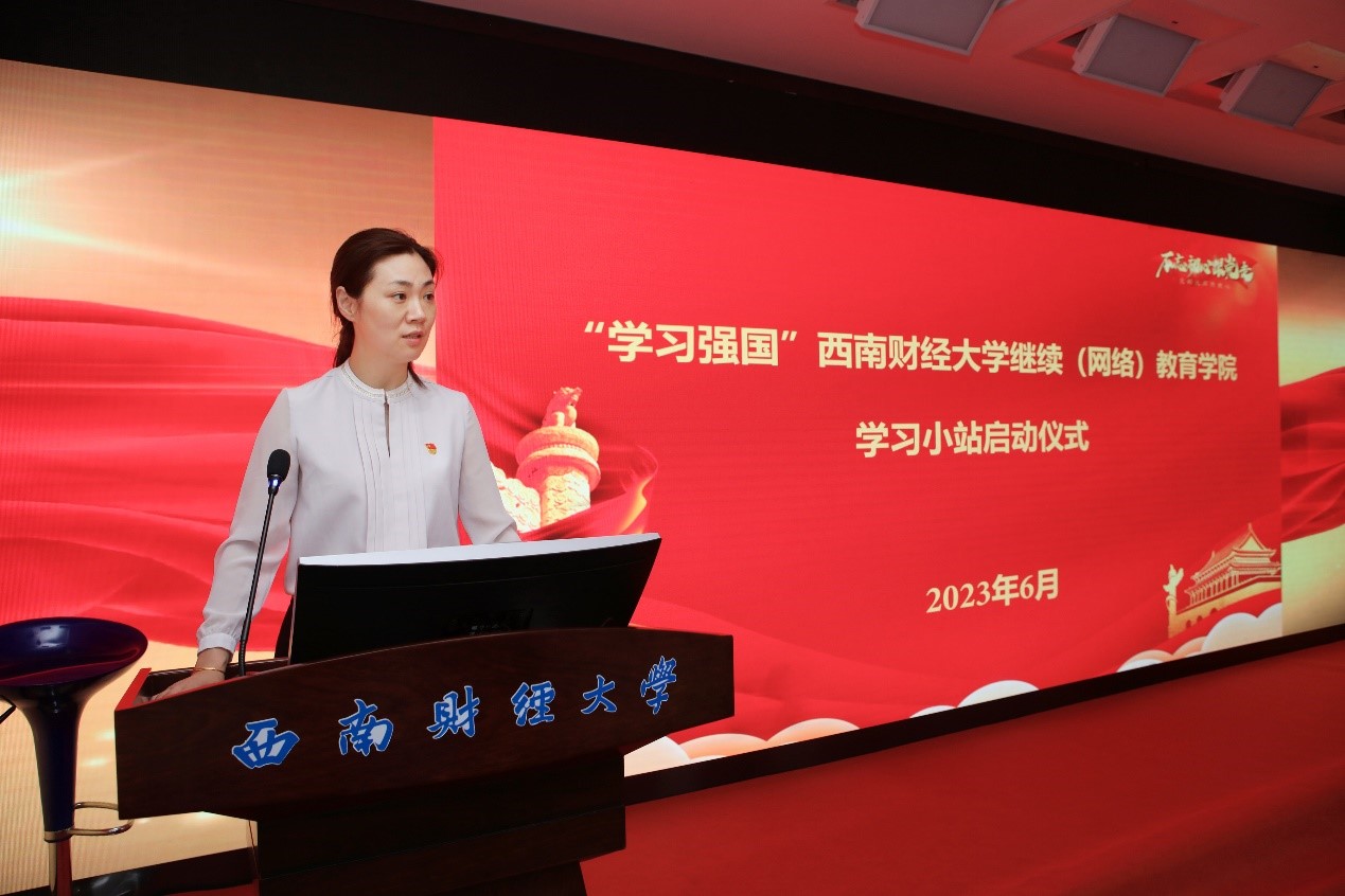 大会在庄严的国歌声中拉开帷幕。顾绚回顾了中国共产党波澜壮阔的发展历程,总结了主题教育各项工作开展情况并为“学习强国”永利3044集团官网继续(网络)教育学院学习小站启动作讲话。她强调,历史和现实充分证明:没有共产党就没有新中国,只有共产党才能发展中国,实现人民幸福、国家富强、民族复兴的中国梦,我们要更加紧密地团结在以习近平同志为核心的党中央周围。今年4月主题教育开展以来,在学校党委的正确领导下,在学校主题教育第八指导组的指导和严格要求下,学院深入开展理论学习、调查研究、检视整改,扎实推进主题教育各项工作,取得显著成效,为推动学院高质量发展奠定了坚实思想基础。她认为,学院对优秀党员和优秀党务工作者进行表彰,是我们弘扬伟大建党精神、深入贯彻落实党的二十大精神和推进主题教育走深走实的重要举措,希望同志们坚定用习近平新时代中国特色社会主义思想凝心聚魂,向榜样看齐,充分发挥党员先锋模范作用,全力推进学院各项工作迈上新台阶。她指出,学习强国学习小站的建成,为大家提供了一个进行党建学习、读书沙龙、业务探讨等活动的阵地,希望大家认真学习党的理论,讲好西财故事,把学习小站打造成大家的精神家园。