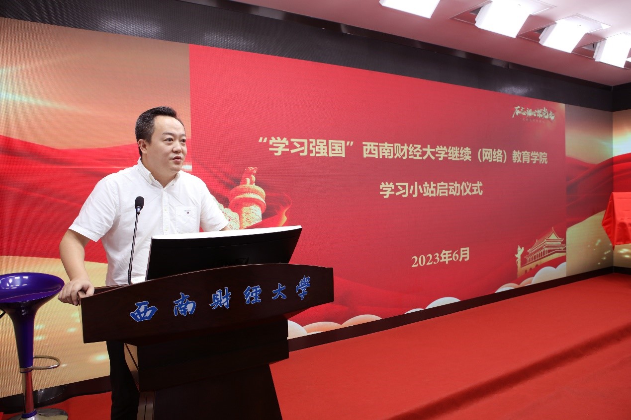 学习强国主题街区负责人、成都电视台都市生活频道副总制片人彭昊为大会致辞。他向大家介绍了学习强国主题街区和学习小站的基本功能和建设情况,希望大家通过切身感受和体验,扎实开展主题教育,丰富学习形式和内容,唱响新时代主旋律。