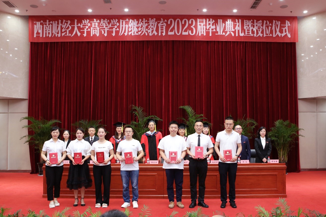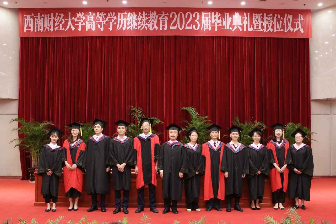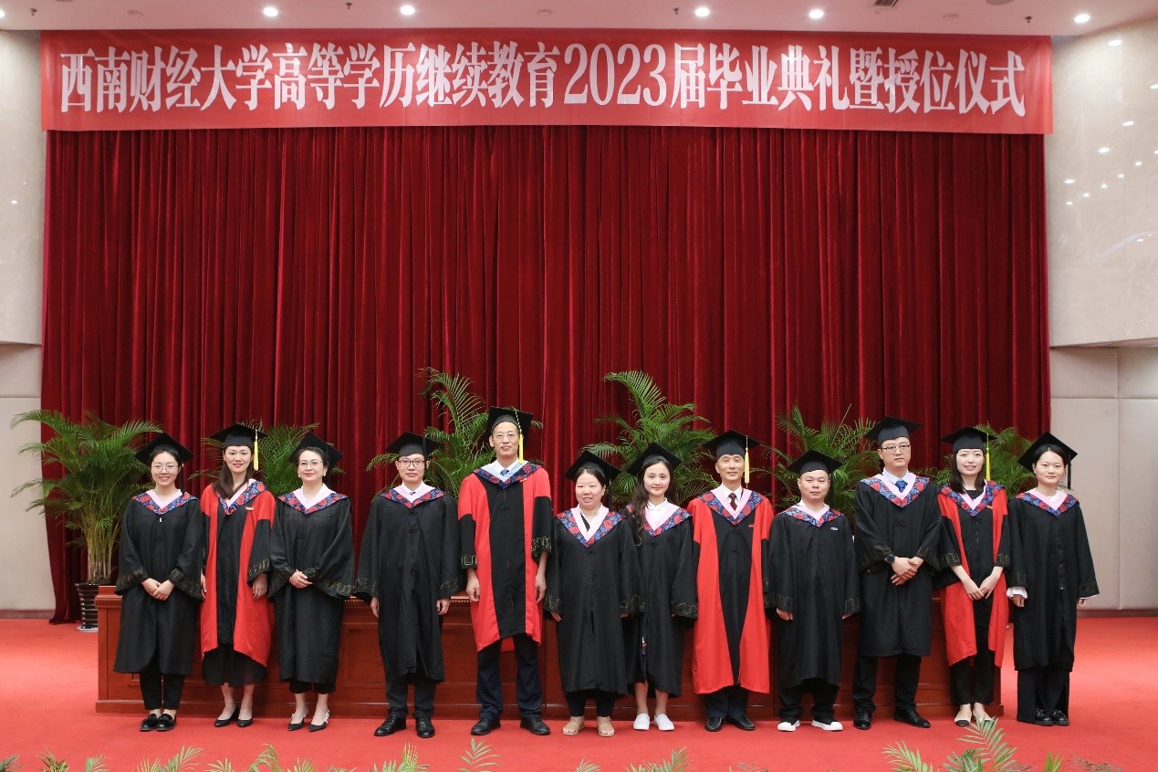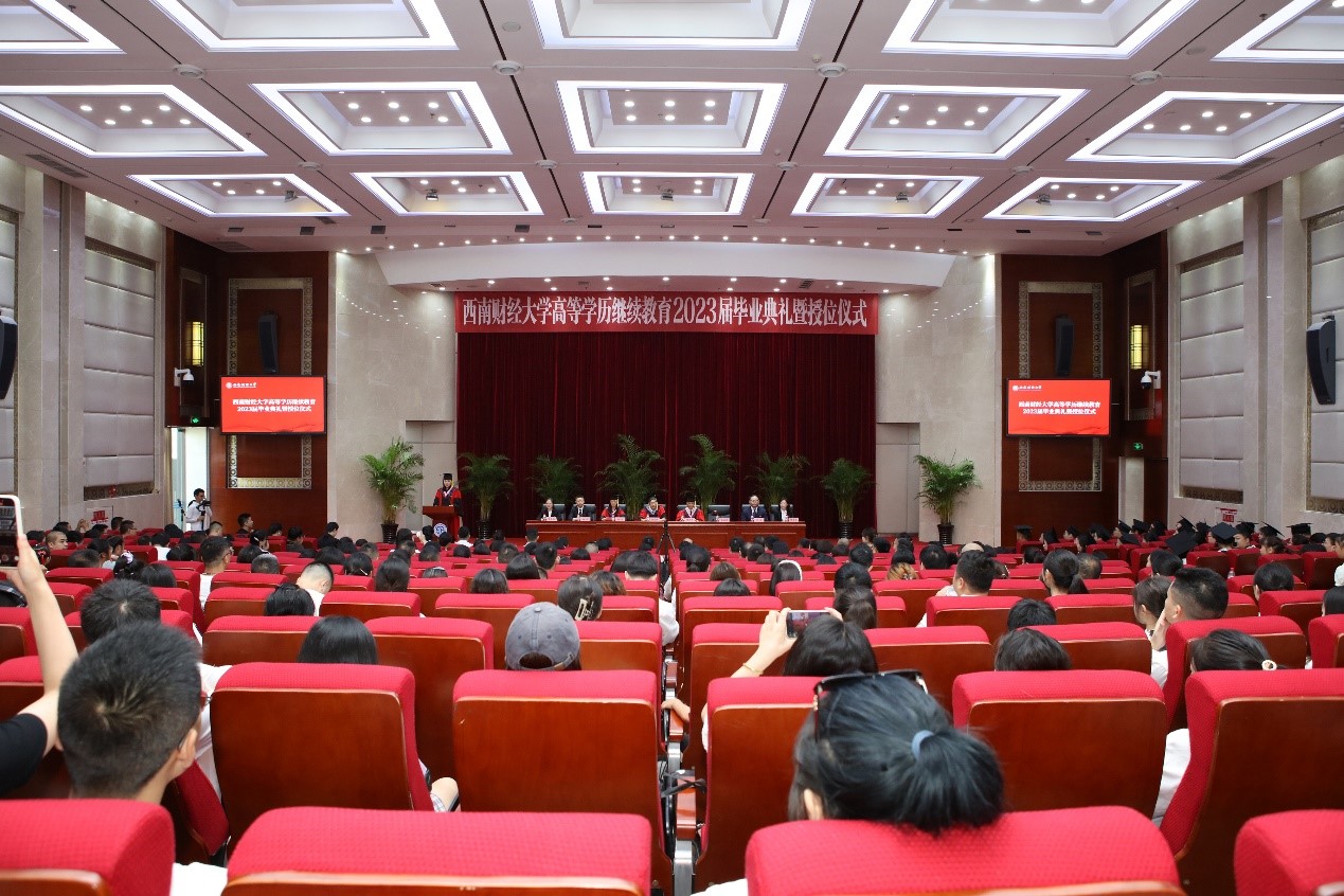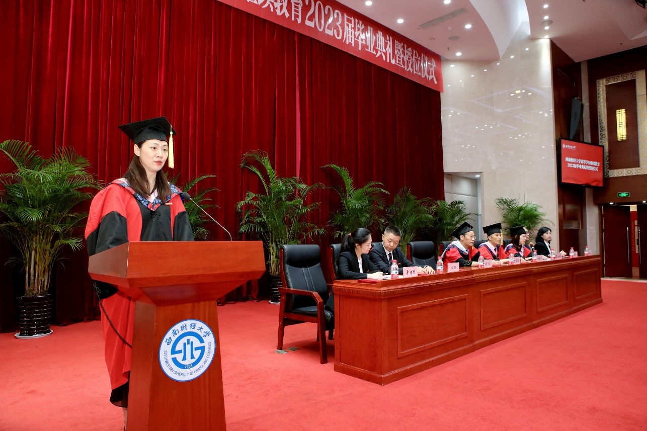 毕业生代表王成娇同学回顾了在西财求学的历程,分享了自己的学习感悟,希望能够用己所学,让“青春之我”同中国式现代化“同频共振”。