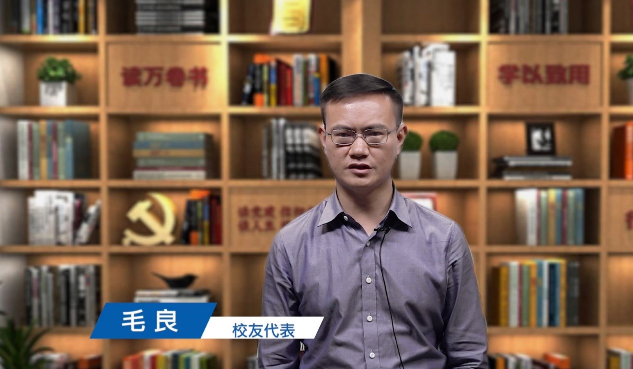 校友代表、爱尔信集团创始人、云南爱尔信教育科技股份有限公司董事长毛良为学弟学妹们送上祝福,希望学弟学妹们心怀理想信念,始终向善向上,踔厉奋发,勇毅前行,乘势而上,不负韶华。