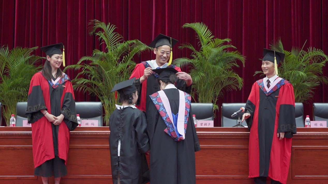 学校学位评定委员会委员、学院院长曾朝夕宣读授位决定。学院党总支书记顾绚宣读2023届秋季优秀毕业生表彰决定,台上领导为获奖毕业生代表颁发证书。