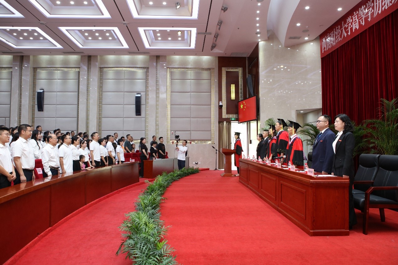 在雄壮的国歌声中,毕业典礼正式拉开帷幕。