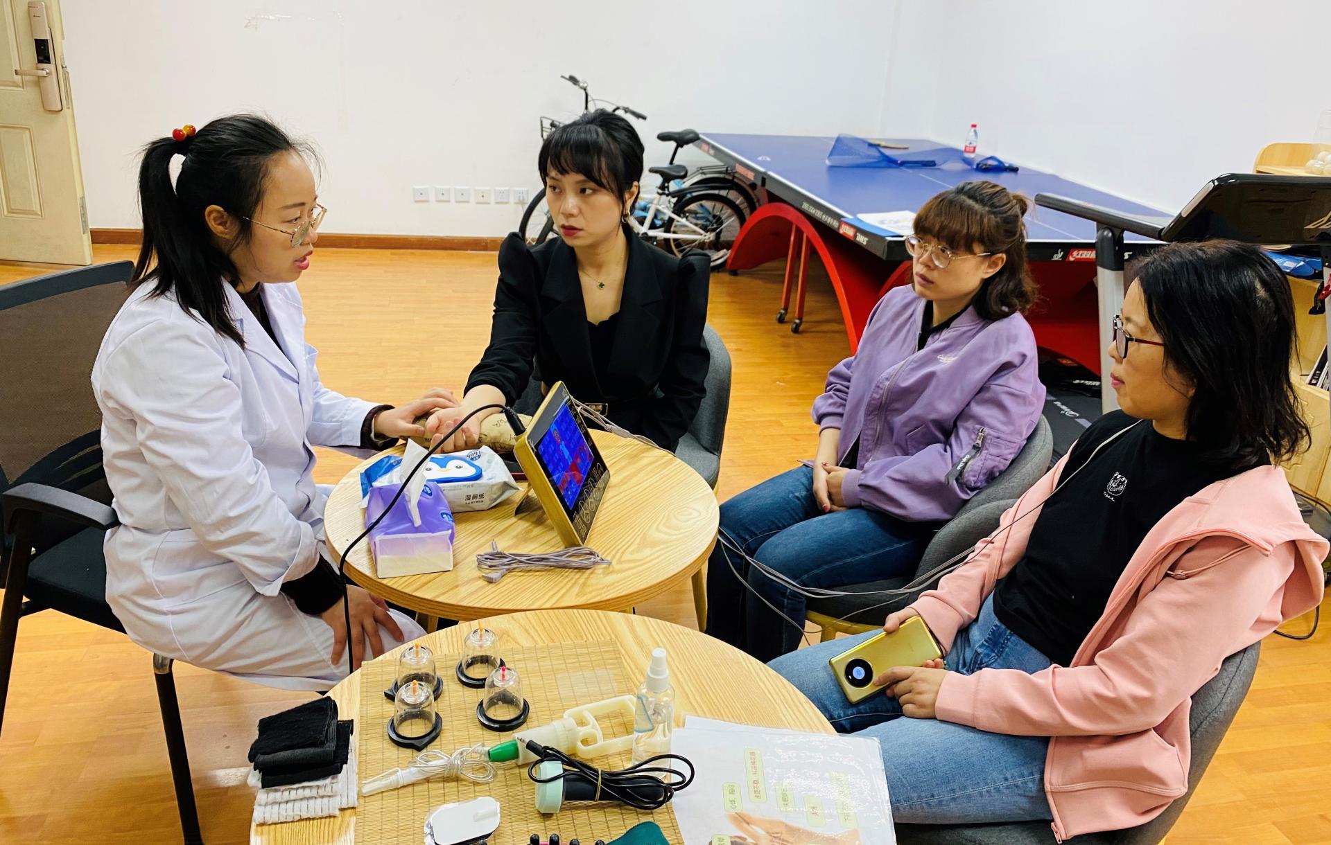 义诊活动从4月24日开始至4月28日结束,为期5天。义诊现场,杨敏老师耐心细致地询问职工的身体状况,针对病症运用中医理疗设备进行治疗。她还为职工系统讲解办公室亚健康疾病的预防、治疗、中医保健方法及注意事项。