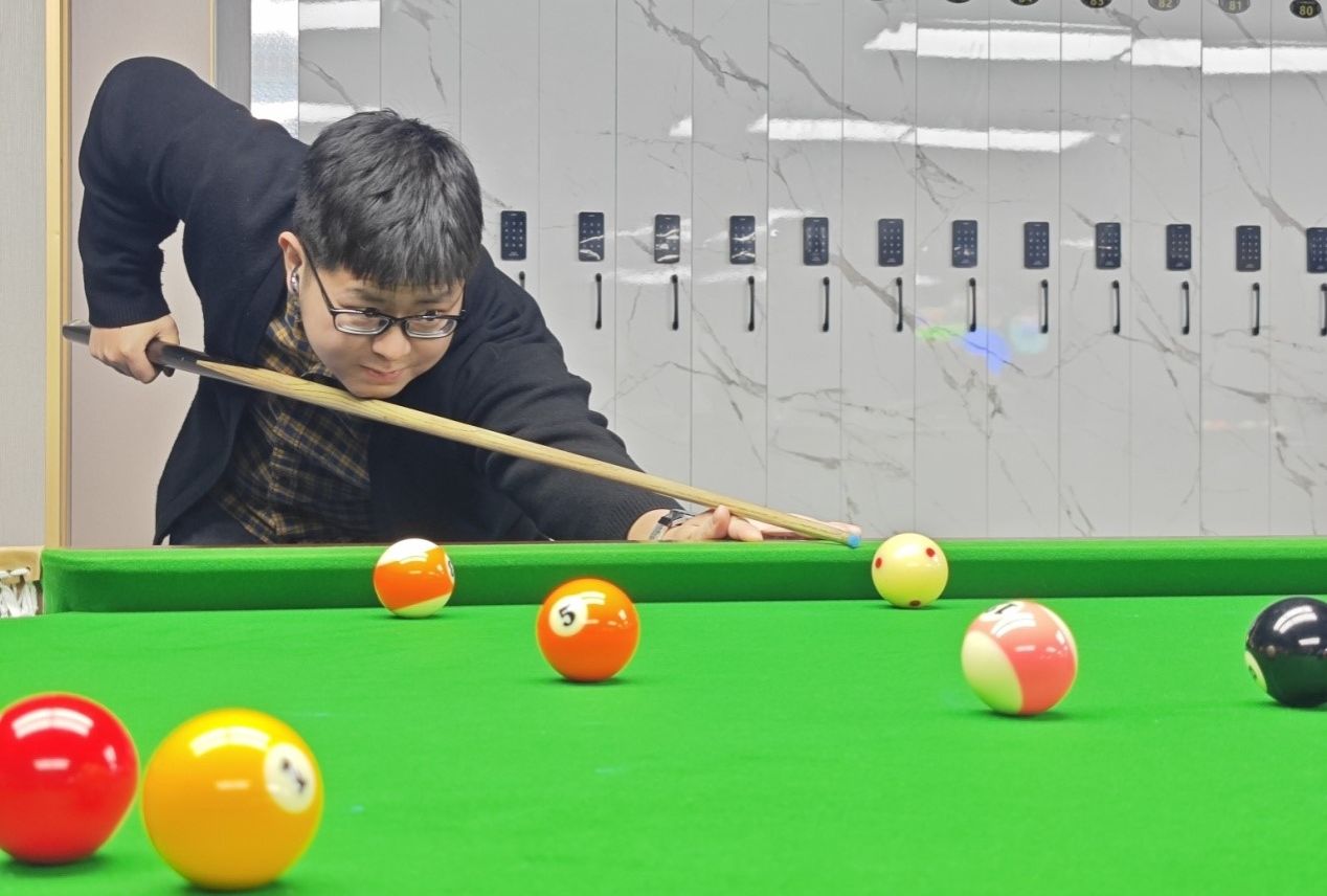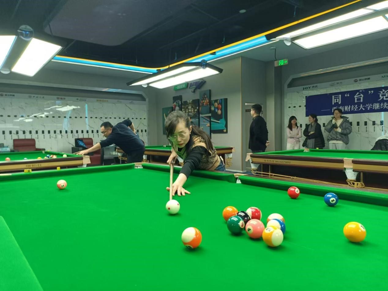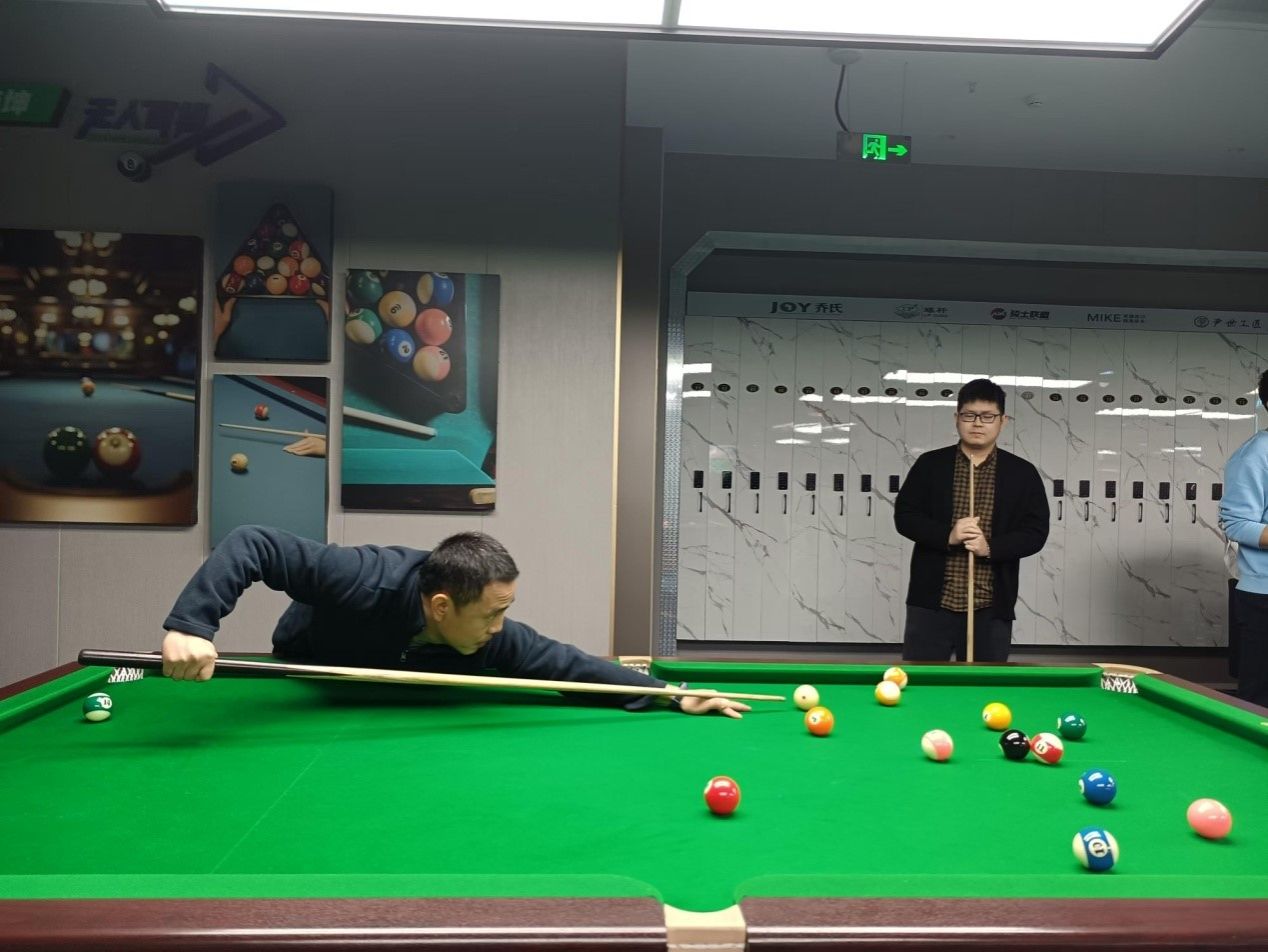 比赛吸引了学院各部门台球爱好者踊跃参与,大家齐聚一堂,共同切磋球技,现场气氛十分热烈。教职工在球台前尽情展现自己精湛的球技,俯身、瞄准、推杆,每一个动作都透露出专注与认真。一颗颗台球在球桌上碰撞、滚动,精彩的进球瞬间更是赢得了现场阵阵喝彩声。大家秉持“友谊第一,比赛第二” 的原则,赛出了风格,赛出了水平。无论胜负,教职工脸上都洋溢着开心的笑容,每一场对决都是增进友谊的纽带。