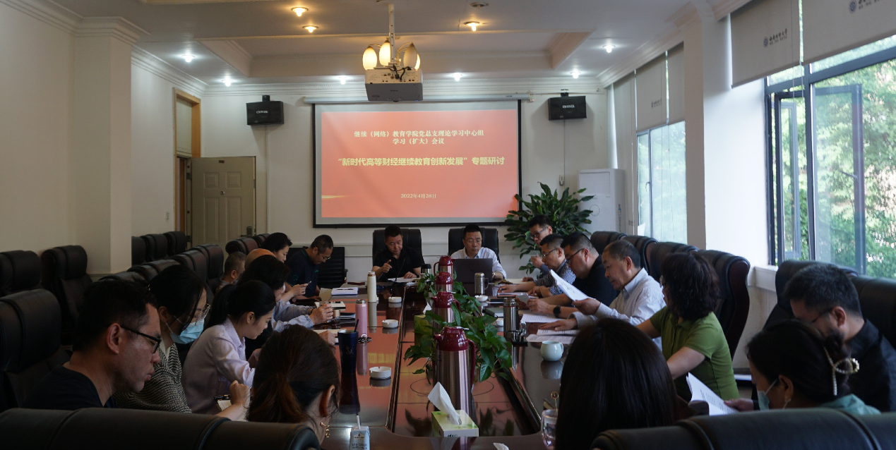 根据学校党委印发的2022年度专题学习要点和学院理论学习中心组2022年度专题学习计划安排,4月28日上午,学院党总支召开理论学习中心组学习(扩大)会议,围绕“全面贯彻新发展理念,认真研判当前高校继续教育新形势,在改革转型中走好新时代高等财经继续教育创新发展之路”开展专题学习研讨,会议由学院党总支书记殷晓明主持。