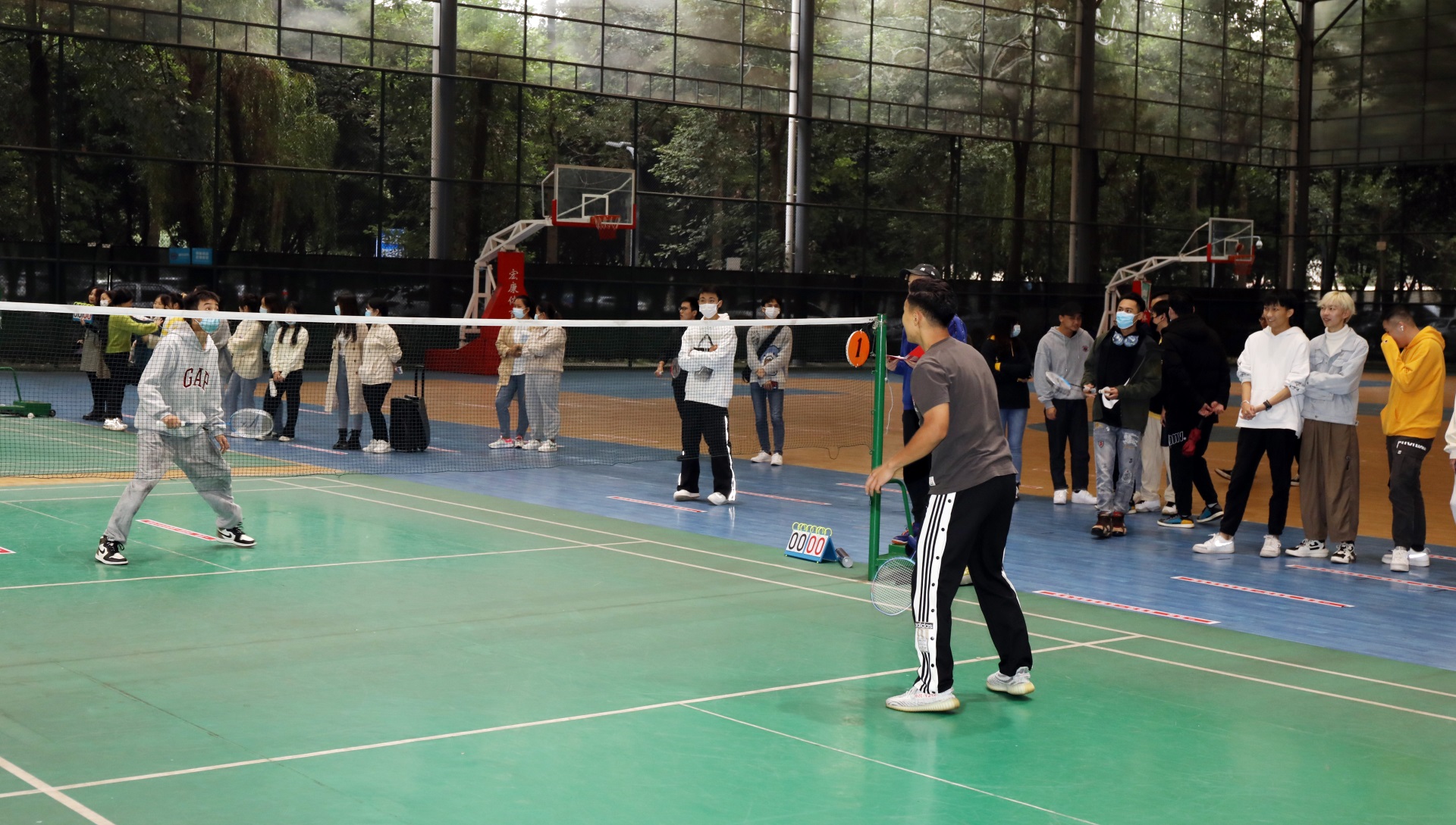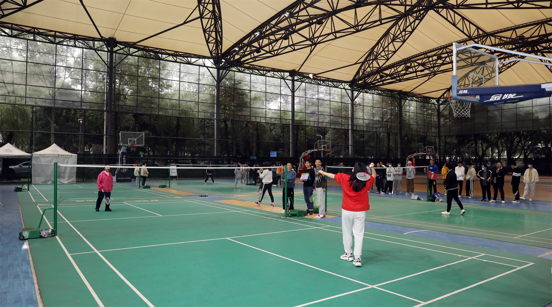 本次羽毛球比赛分为男单、女单、混双三个项目,实行残酷的淘汰赛制,共吸引48名选手参赛。比赛当日,天空下起绵绵细雨,吹着微微寒风,室外温度低至12℃。选手们在比赛场上却激情高涨,活力四射。他们时而重扣,时而轻吊;时而杀边,时而打斜;时而奔跑,时而跳跃;全力以赴,每球必争。他们精彩的表现赢得观众阵阵呐喊与掌声。经过激烈角逐,最终决出男单前八名、女单前八名和混双前三名。