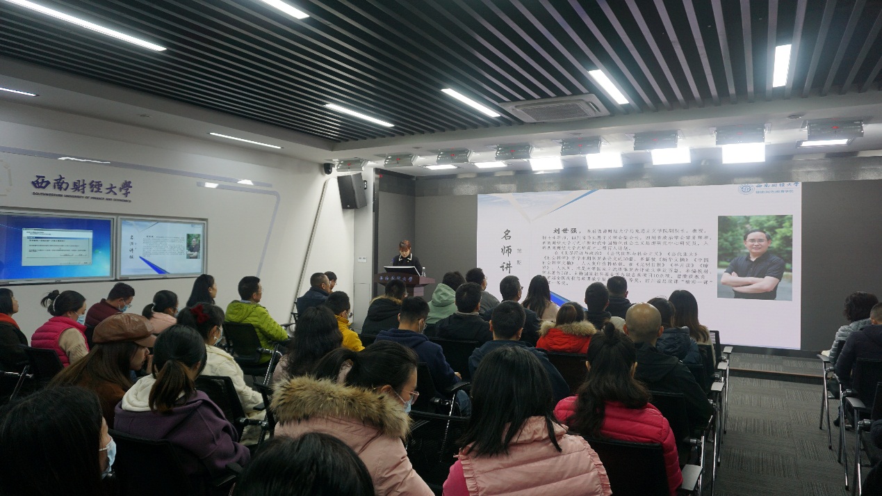 11月23日下午,继续(网络)教育学院 “名师讲坛”在计算机楼未来教室举行,本次讲坛特邀永利3044集团官网马克思主义学院副院长刘世强教授作题为《在新时代新征程赢得更大的胜利和荣光——党的十九届六中全会精神解读》的专题讲座。本次讲座由教学部负责李政佼老师主持,学院全体教职员工现场聆听了本次讲座。