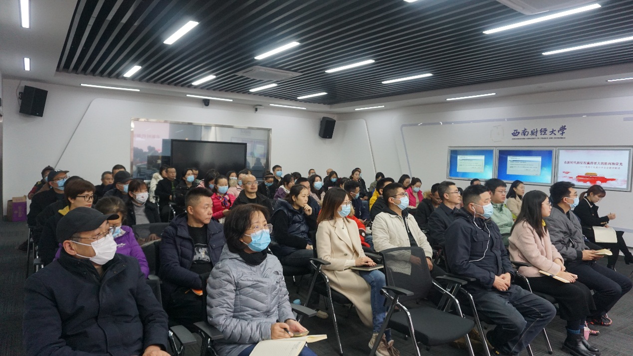 刘世强教授聚焦十九届六中全会精神,运用生动的案例、丰富的史实,详实的数据,围绕深刻把握总结党的百年奋斗重大成就和历史经验的重大意义,深刻把握党的百年奋斗初心使命,深刻把握新时代的历史性成就和历史性变革,深刻把握党的百年奋斗的历史意义和历史经验,深刻把握以史为鉴、开创未来的实践要求等方面,对党的十九届六中全会精神进行了全面解读和深刻阐释。他强调,我们要坚定理想信念,牢牢把握正确方向导向,不负伟大梦想,勇毅前行,在新时代新征程赢得更大的胜利和荣光。
