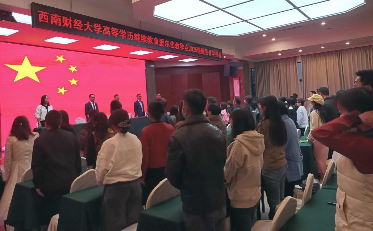 3月14日,曾朝夕院长一行出席我校高等学历继续教育云南爱尔信教学点2025级新生开学典礼。爱尔信集团创始人、董事长毛良,爱尔信集团执行总裁、爱尔信产业学院校长余强,爱尔信股份财税教育副校长刘金花以及教学点300余名师生通过线上、线下方式共同出席开学典礼。
