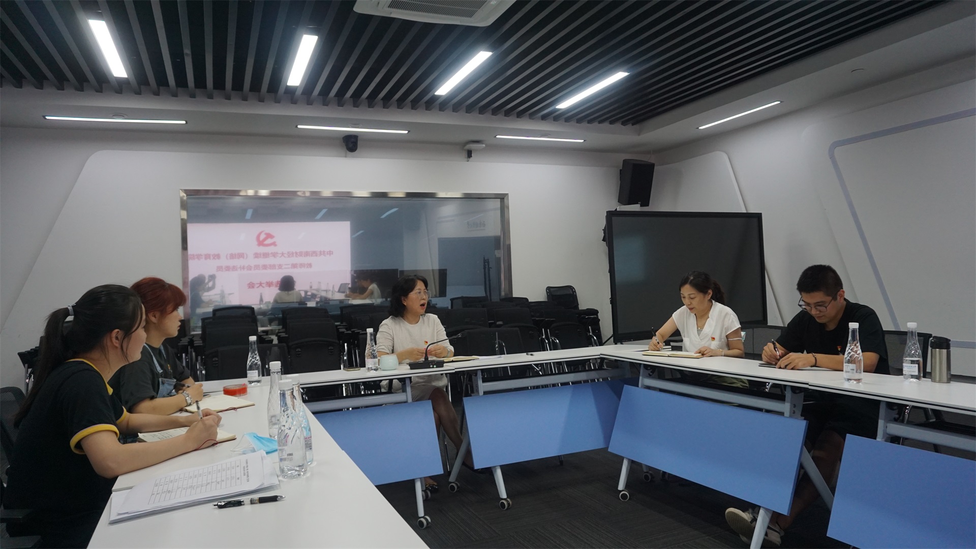 2021年9月8日下午,教师第二党支部在光华校区未来教室召开党员大会和主题党日活动,活动由支部书记郑斌同志主持。