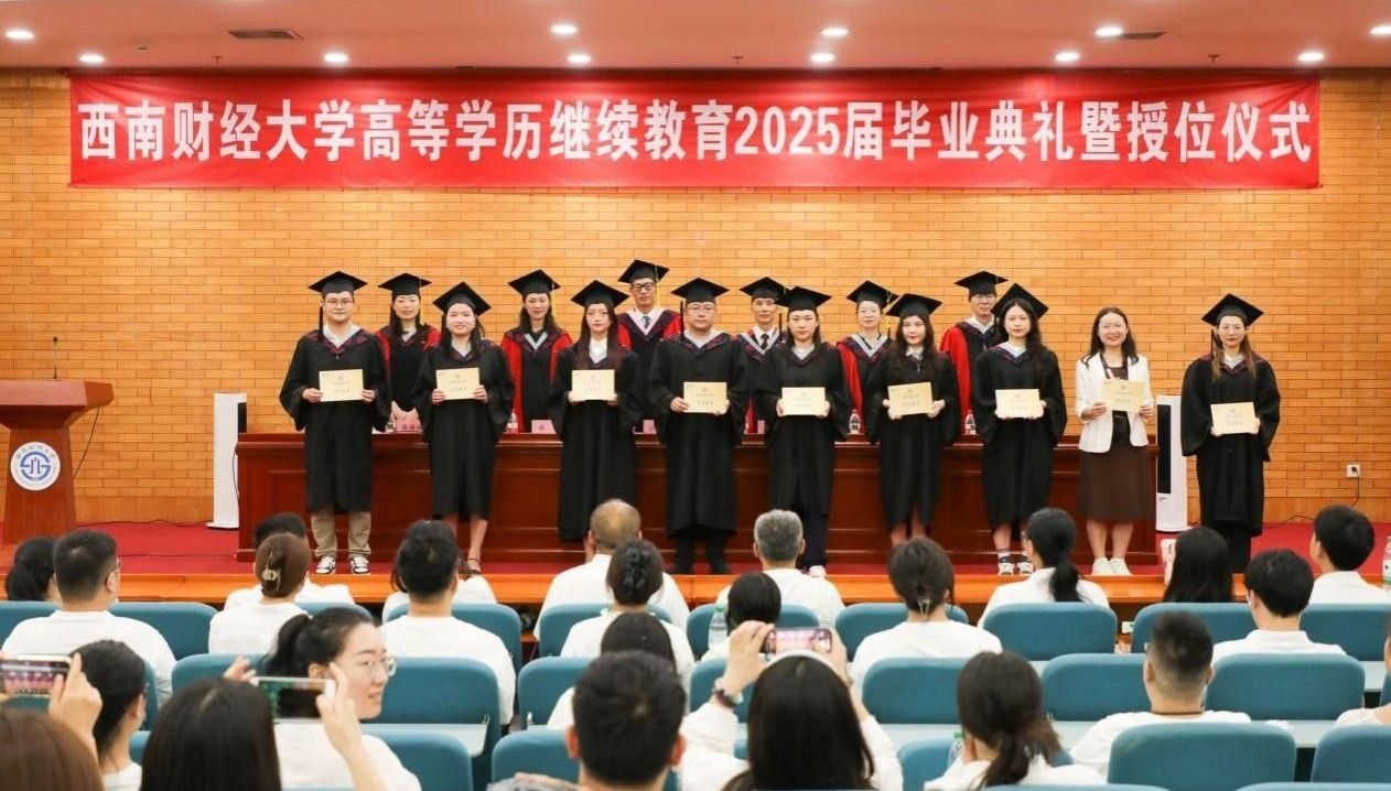 7月12日上午,永利3044集团官网高等学历继续教育2025届毕业典礼暨授位仪式在学校光华校区光华西厅举行。学校党委常委、副校长桂富强,教务处副处长廖春华,继续教育学院院长曾朝夕、党总支书记顾绚、党总支副书记李杰、副院长高婷婷,学院职能部门负责人、教职工代表、家属代表,成人教育、网络教育、自学考试应用型专业2025届毕业生参加典礼。高婷婷主持典礼。