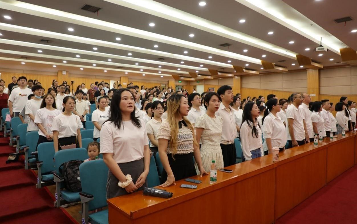 毕业典礼在雄壮的国歌声中拉开帷幕。