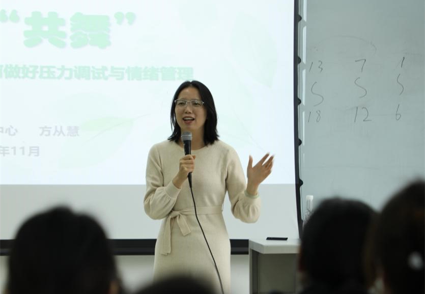 近日,为全面提升职工综合素养和业务能力,结合学院职工职业规划发展工作,为职工心理健康赋能,由学院党总支举办的第6期孜孜讲坛暨《职工压力与情绪管理》心理知识讲座在明德楼208室开讲。本次讲座邀请到学校心理健康教育中心专职教师方从慧进行授课,学院全体职工参加。