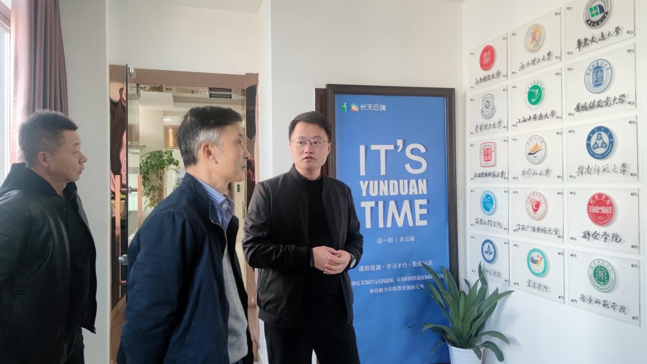 下午,曾朝夕一行走访了南昌教学点所属集团旗下的智慧教育数据中心,深入了解现代教育技术和数据分析在继续教育教学中的应用。曾朝夕对其继续教育学习平台和管理系统研发技术和服务模式方面的创新表示肯定,并期待更多的技术手段能够服务于继续教育教学和管理。