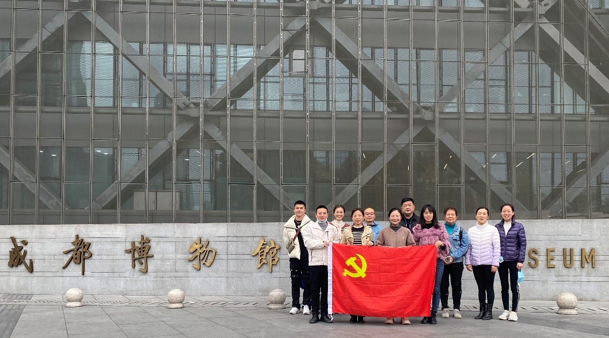 11月30日下午,学院党总支教师第二支部党员、党员发展对象、入党积极分子一行前往成都市博物馆参观学习。在讲解员的带领下,大家认真聆听,不时驻足观看,相互交流,先后参观了“花重锦官城——成都历史文化陈列”中的古代篇、近世篇、民俗篇等展厅。从先秦到十九世纪中叶,从古代到近代,成都博物馆就像一本厚重的史书,翔实记录了成都这座古城的前世今生,生动展现了成都这座古城的恢弘历史。作为保路运动的重要策源地、抗战大后方的战略重镇、解放大西南的主要战场,成都在中国近代历程中扮演着十分重要的角色。大家在展厅中看到早期共产党人在成都地区为共产主义事业奋斗的事迹,纷纷为先辈们的勇气、责任和担当所感动。