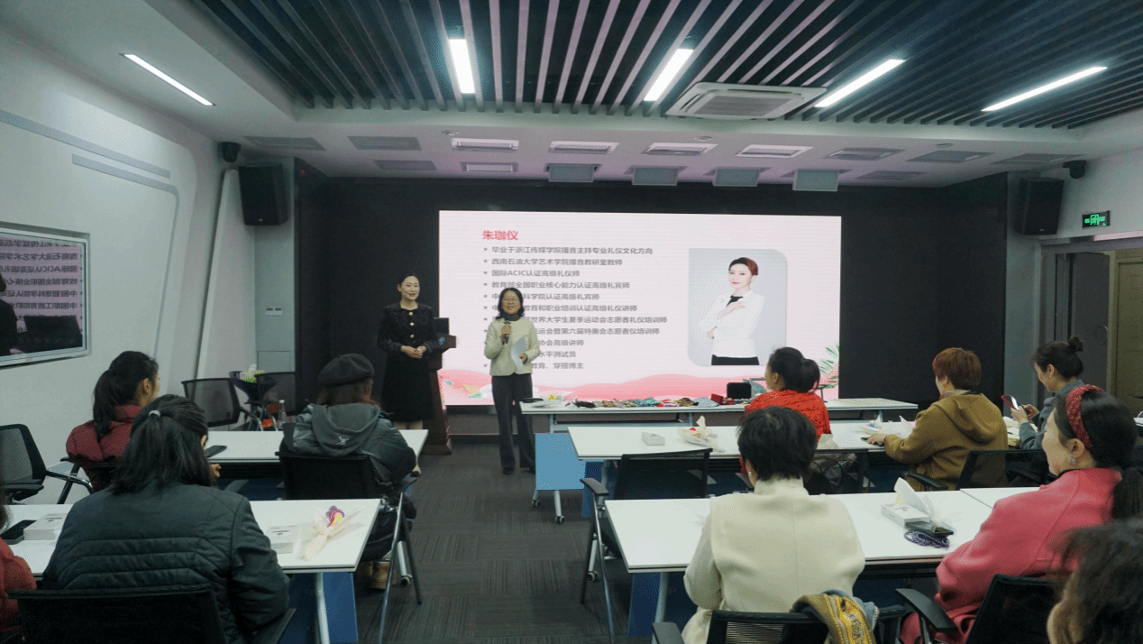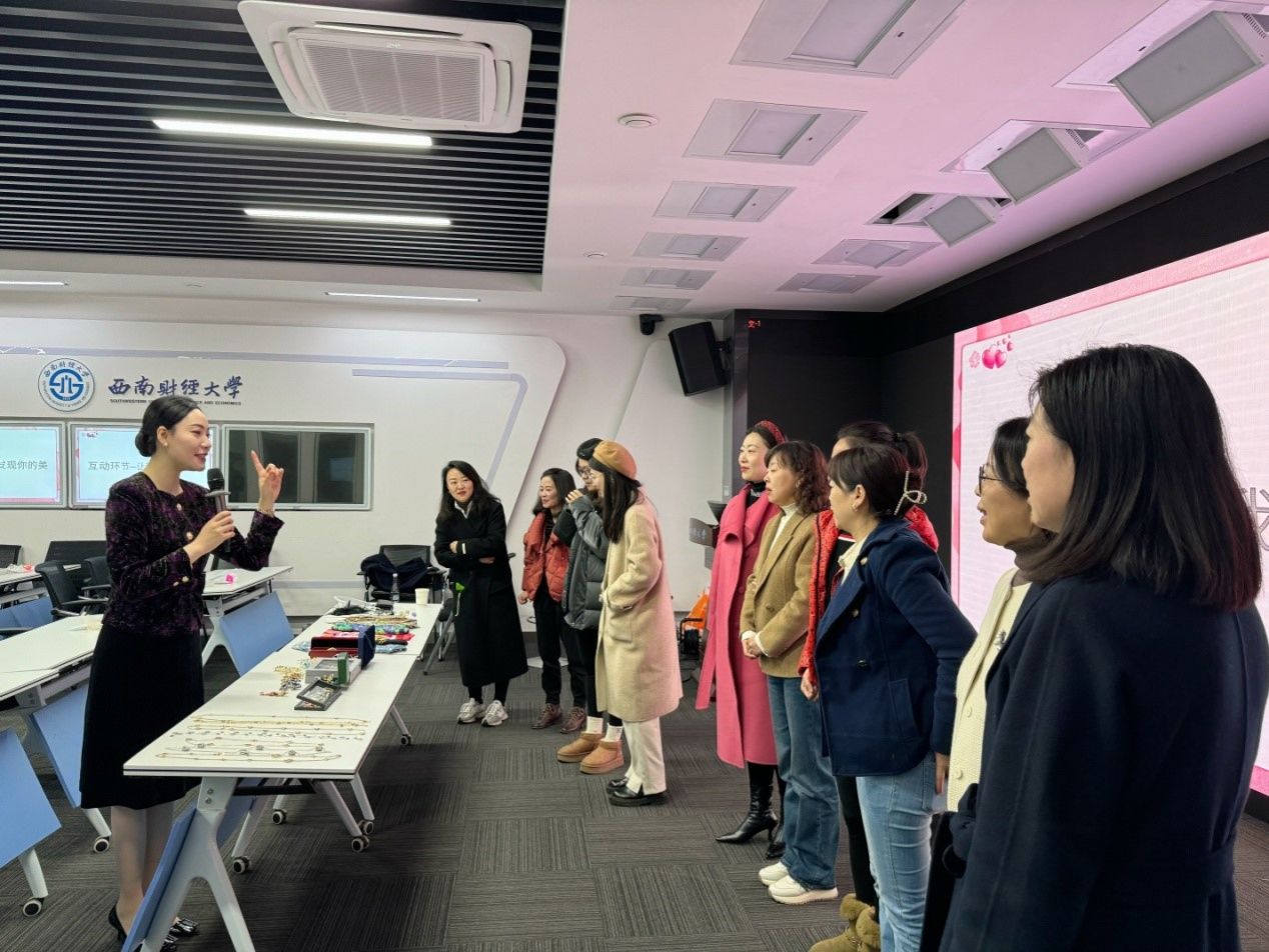 春日芳菲,生机盎然。为庆祝第114个三·八国际妇女节,3月8日上午,继续(网络)教育学院在计算机楼未来教室举办了一场别开生面的“女神”形象管理沙龙活动,特邀西南石油大学艺术学院教师、高级礼仪师朱珈仪主讲。此次活动旨在展现女性魅力、凝聚巾帼力量,丰富女性教职工的精神文化生活,提升女性教职工的形象管理能力。