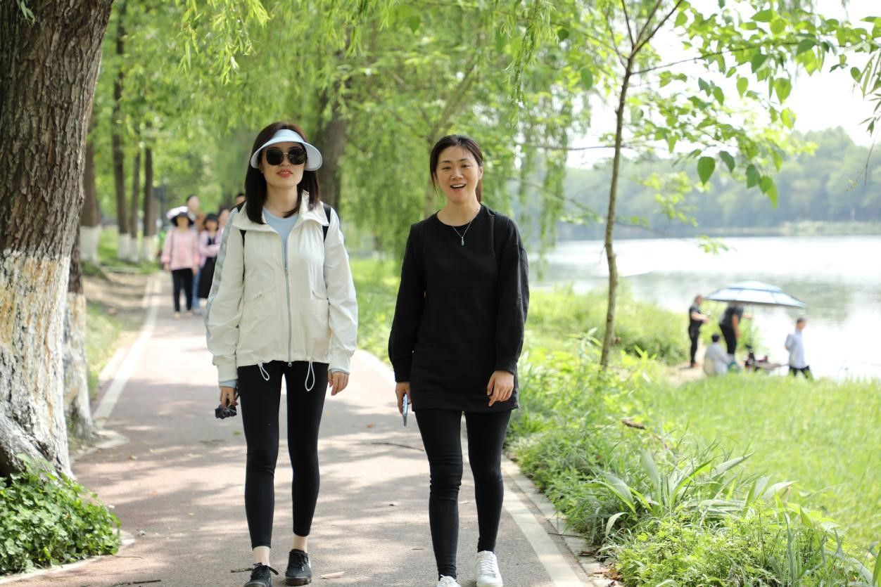在绿树成荫、花香四溢的公园步道上,教职工们三五成群,或快或慢,边走边拍,一边欣赏着沿途的美景,一边畅谈着工作与生活的话题。大家脸上都洋溢着快乐的笑容,享受着户外运动带来的乐趣。
