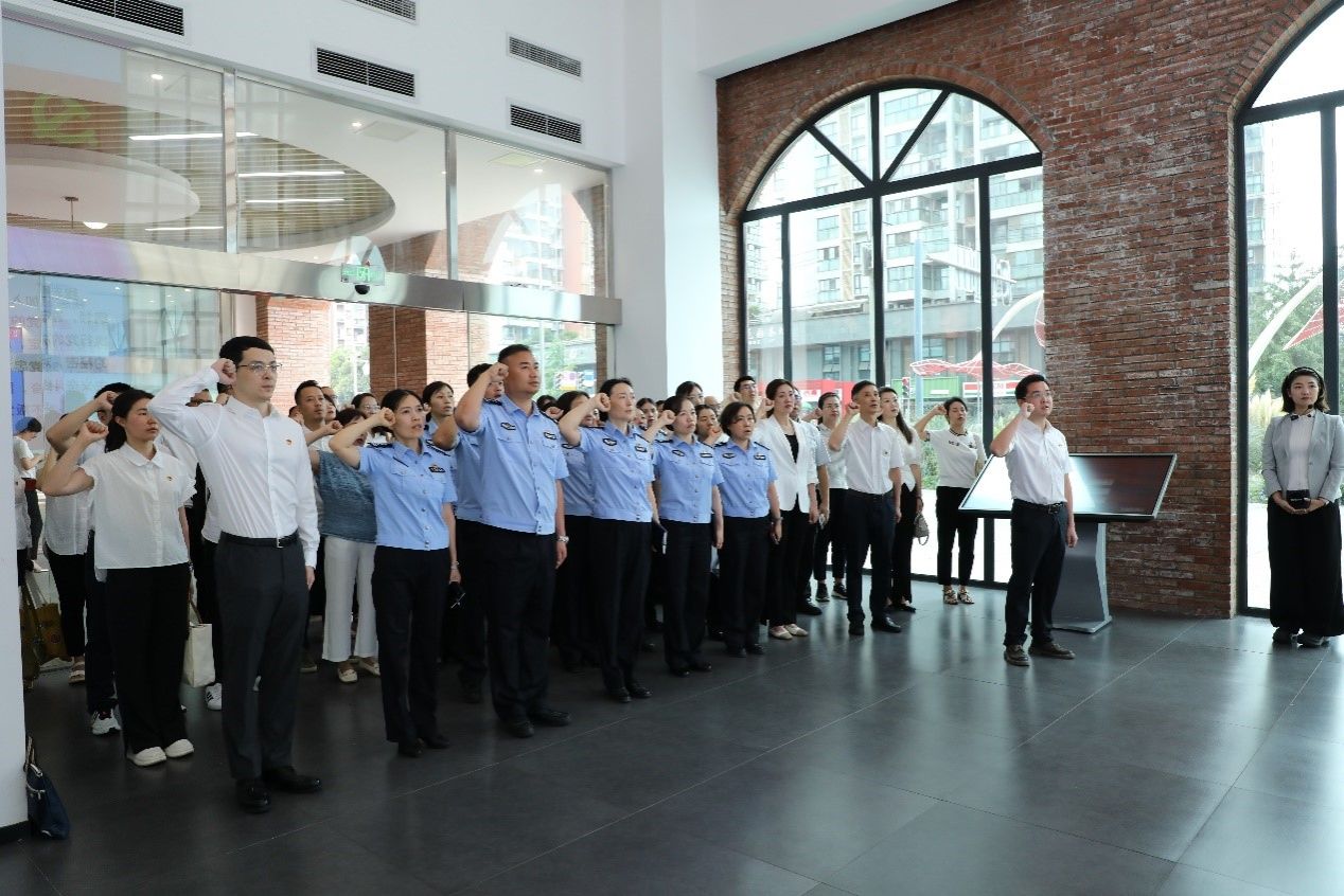 活动当天,党员们走进“学习强国”主题街区,在讲解员的讲述中,全面了解主题街区的设计理念、建设布局,以及街区的三大功能场景。在“学而时习之”序厅,党员们重温了入党誓词,参观主题街区详实的档案资料,通过电子屏幕进行互动,共同回顾了中国共产党建党百年来团结带领广大人民群众进行革命、建设和改革的伟大历程,感受党和国家取得的伟大成就,沿着“习近平总书记的足迹”图片展深刻感受祖国发展与城市的变迁。