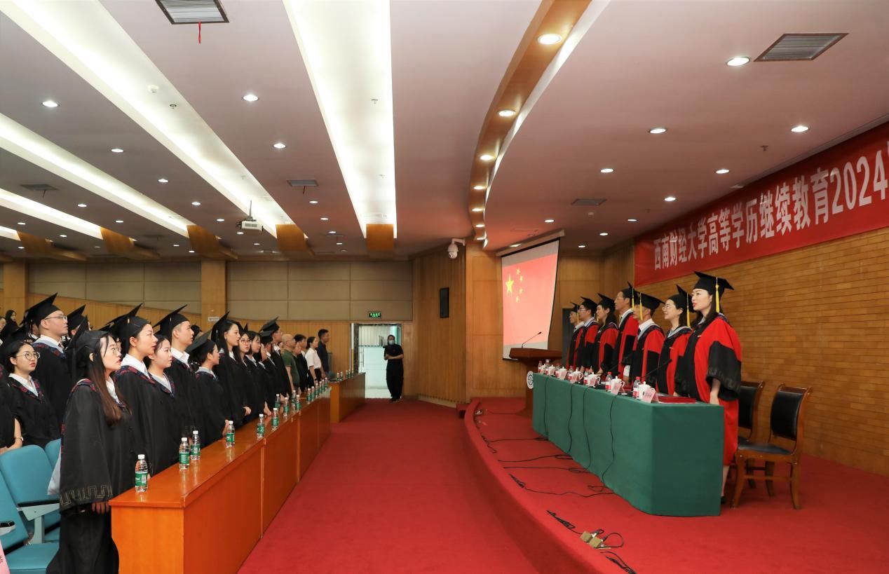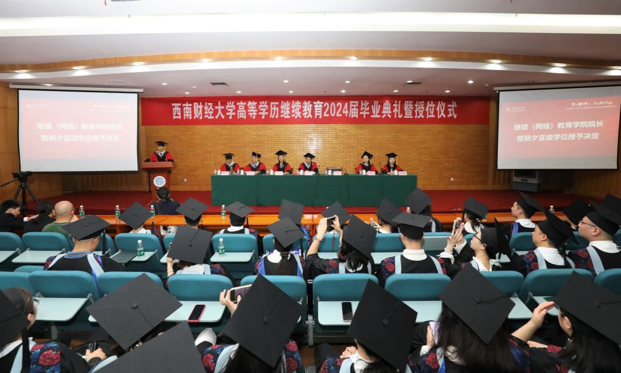 7月20日上午,学校在光华校区光华西厅举行高等学历继续教育2024届毕业典礼暨授位仪式,深情送别毕业生。学校党委常委、副校长桂富强,教务处副处长廖春华,研究生院学位科科长刘慧新,继续(网络)教育学院院长曾朝夕、党总支书记顾绚、党总支副书记、副院长李杰、副院长高婷婷,学院职能部门负责人、教职工代表、家属代表,成人教育、网络教育、自学考试应用型专业2024届毕业生参加典礼。李杰主持典礼。