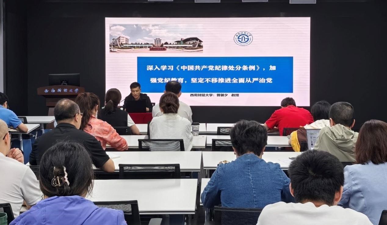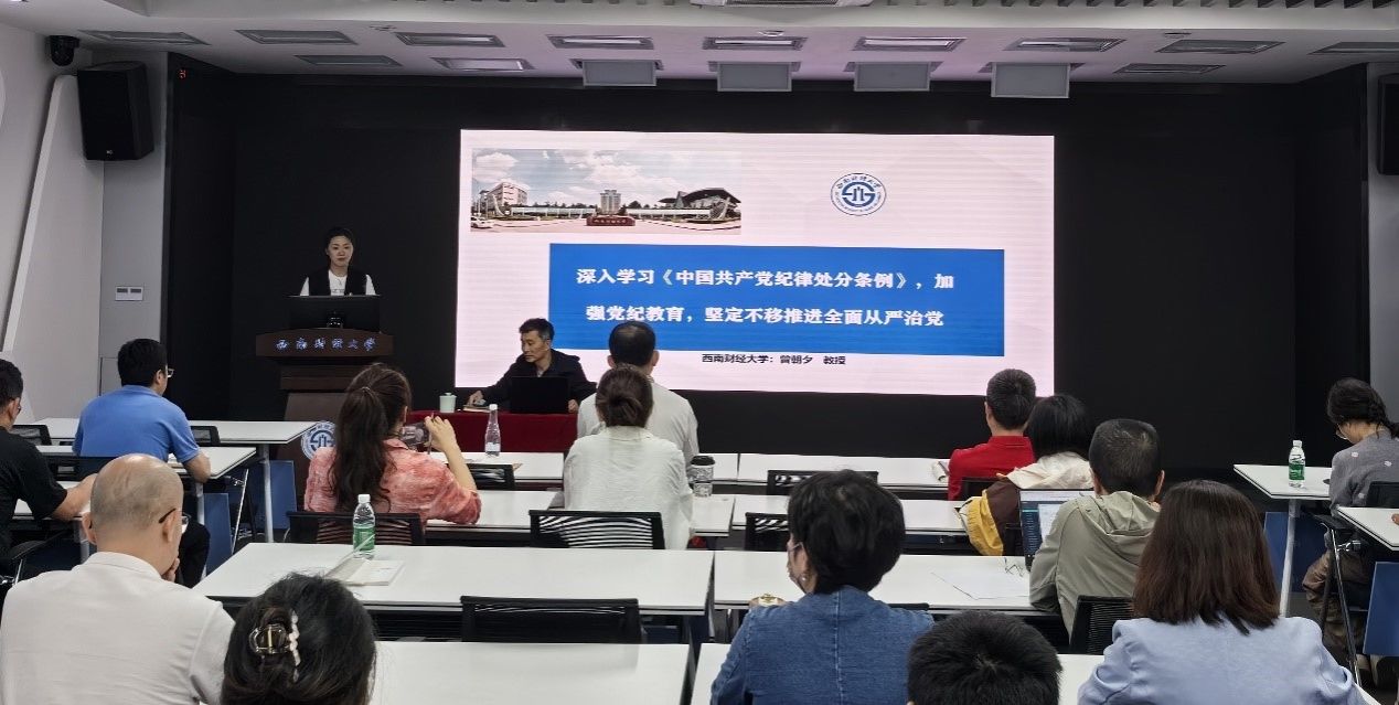 学院院长曾朝夕以“深入学习《中国共产党纪律处分条例》,加强党纪教育,坚定不移推进全面从严治党”为题,讲授专题讲座。他从腐败问题的本质和根源、十八大以来全面从严治党的部署与成就、新时代全面从严治党如何推进、加强党纪学习教育的基本要求等四个方面深入展开论述。他要求全体党员紧紧抓住党纪学习教育的契机,认真学习贯彻《中国共产党纪律处分条例》,严守政治纪律和政治规矩,用习近平新时代中国特色社会主义思想统一思想、统一意志、统一行动,捍卫“两个确立”,做到“两个维护”;树立正确的权力观、政绩观,深化改革健全制度,以制度管权;突出“严”的基调,把握作风建设地区性、行业性、阶段性特点,抓住普遍发生、反复出现的问题深化整改,从思想上固本培元,提高党性觉悟,增强拒腐防变能力。
